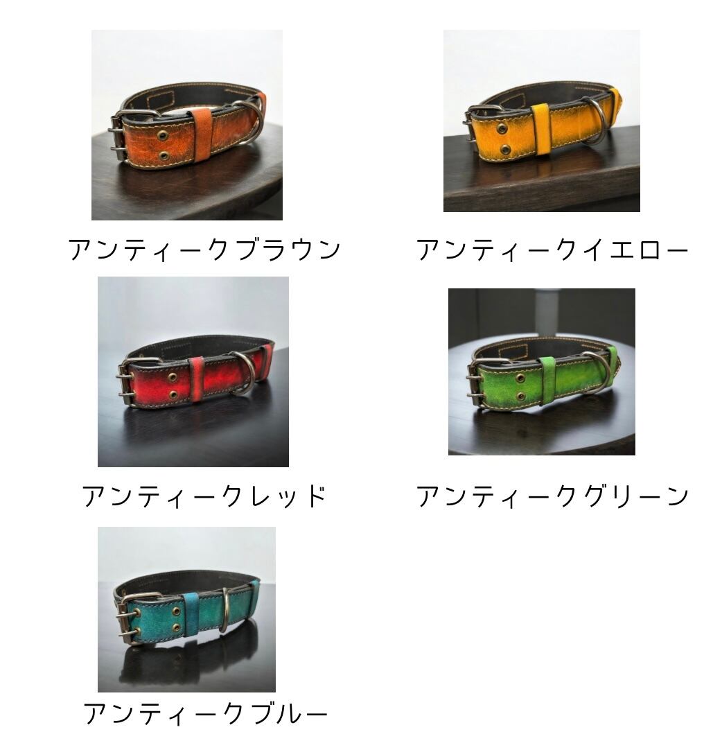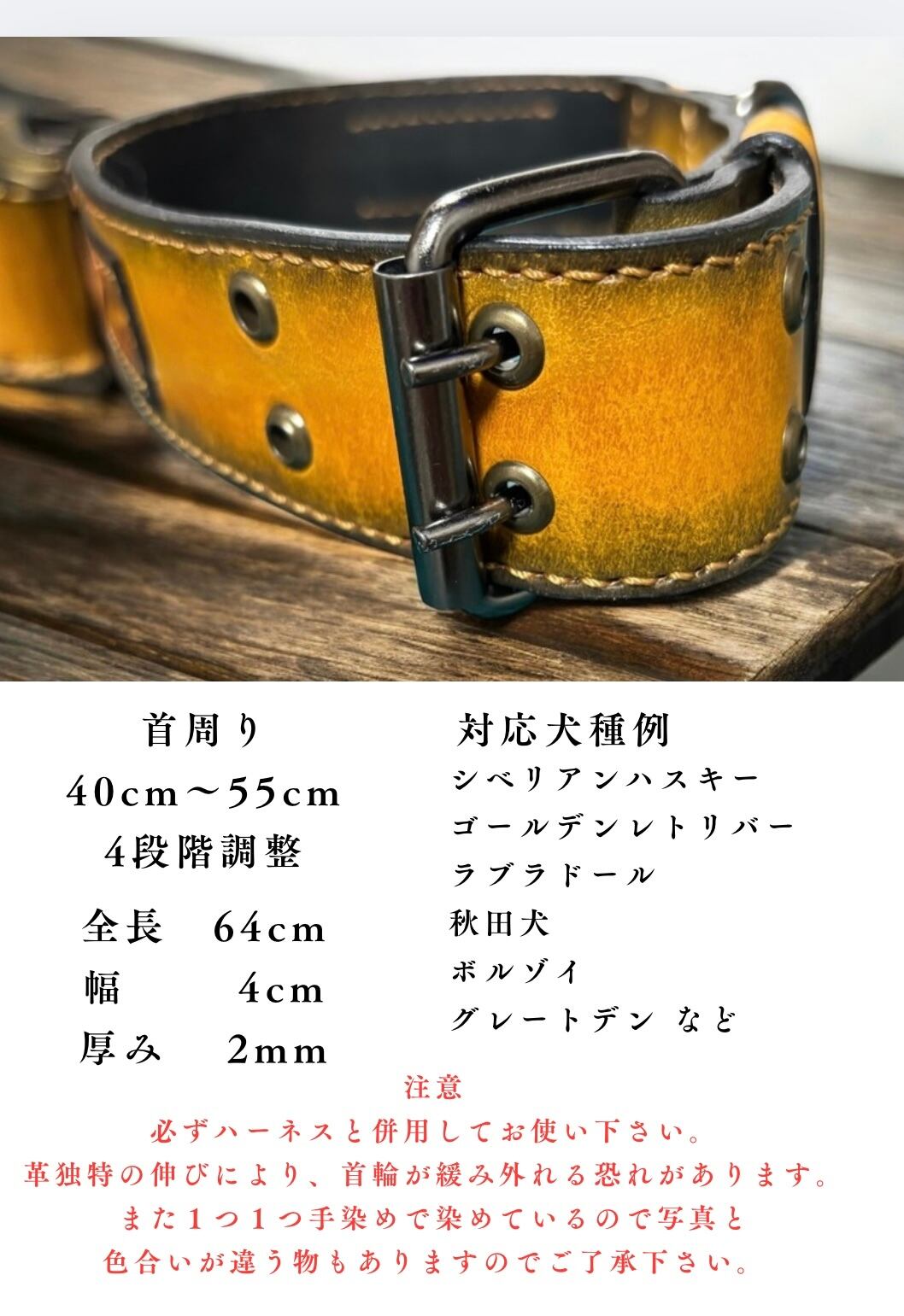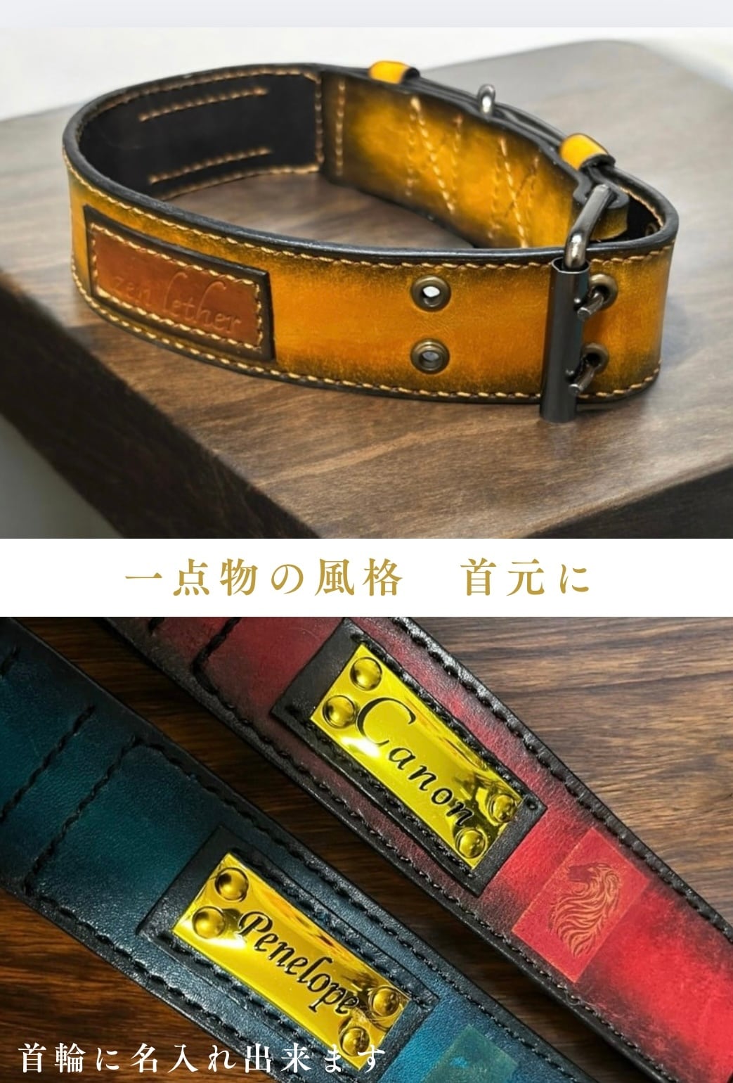 一つひとつ手作業で染め上げた革は、同じ色でも微妙に表情が異なり、世界に一つだけの首輪となります。