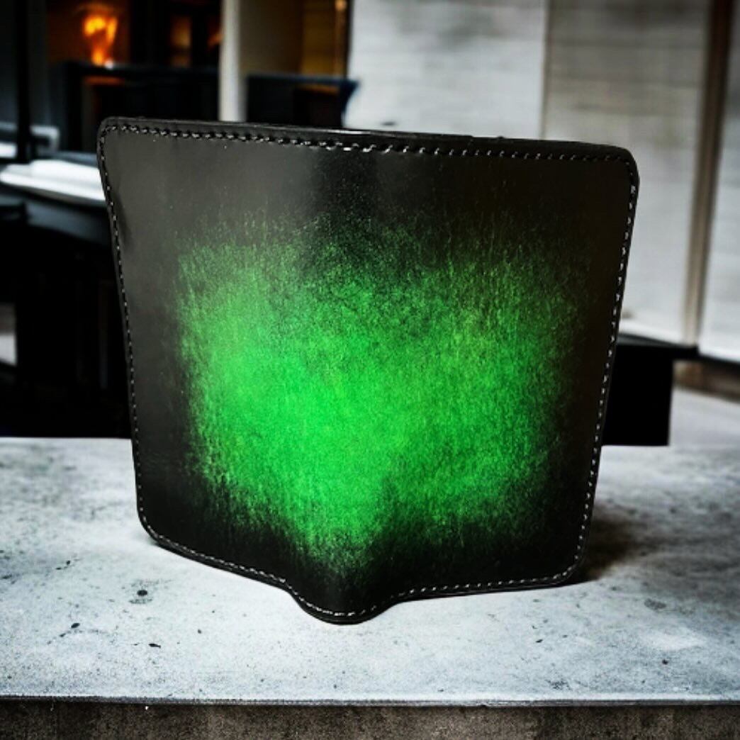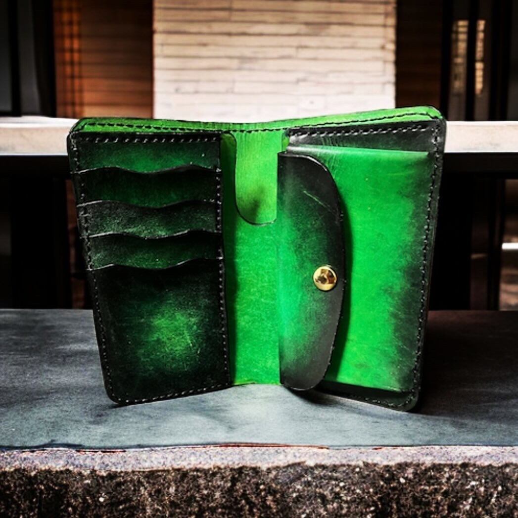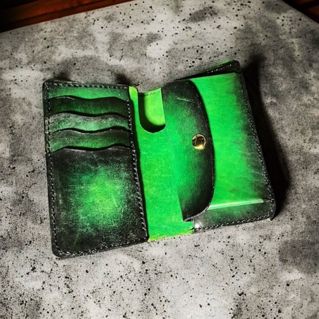 手染め、手縫いにて製作したミドルウォレットになります。