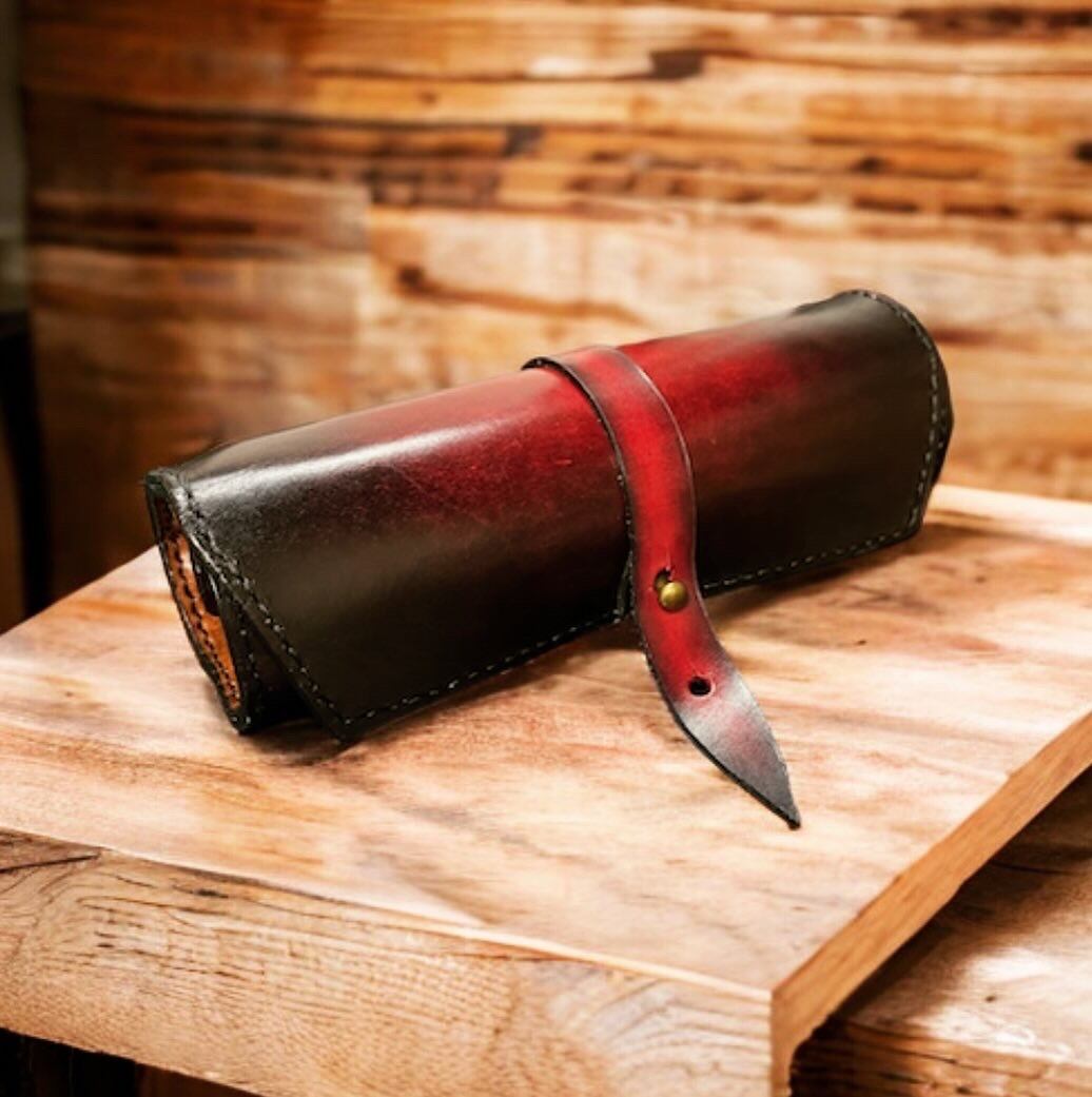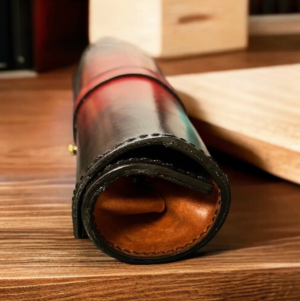 7本のペンを収納する事ができ、クルクル撒いてバンドで留めて持ち運べます。